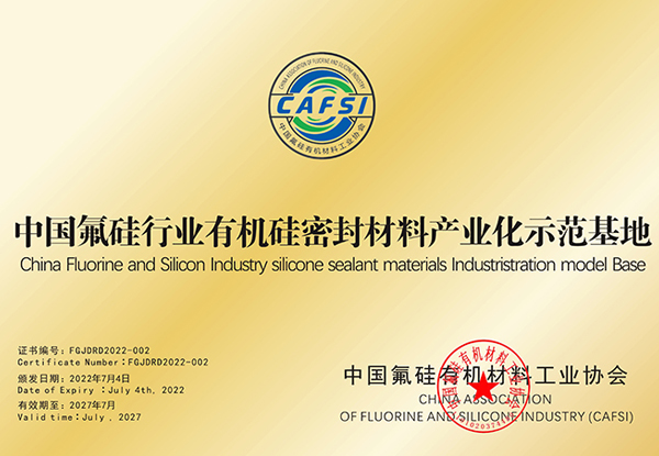 - 152021.12.20 Meritorious Member -40th Anniversary of the Establishment of the China Building Metal Structure Association162021.11-2027.1 China Silicone Sealant Green Development Alliance (founding member) China Fluorosilicone Organic Materials Industry Association